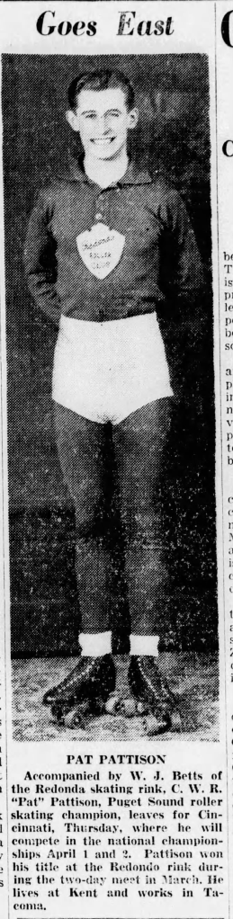 Upon receiving this information, Weston decided to have a Puget Sound Championship. The Puget Sound Rinks were notified. Only five applications were received. The Redondo Speed Club was the first-speed club west of the Mississippi River.
