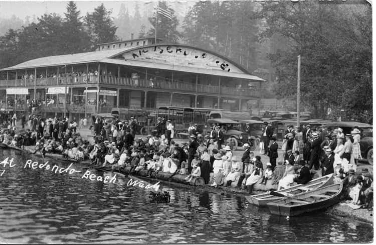 Big-name bands played at Redondo, including Vic Meyers, who later became Lt. Governor of Washington. When Weston and his dad built the building it was three stories. The first floor was dressing rooms for swimmers. The second floor boasted four bowling alleys, pool tables, games, and other amusement devices. The third and top floor boasted a large maple dance floor.