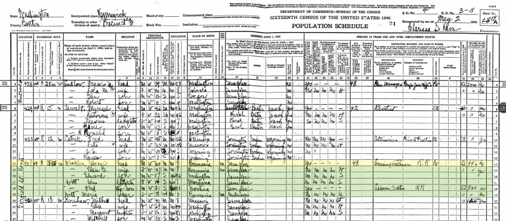 1940 census both George and Fred are working at the Northern Pacific Railroad. I believe Maria the lodger maybe Elsie’s Mother-in-law or Grandma-in-law even?