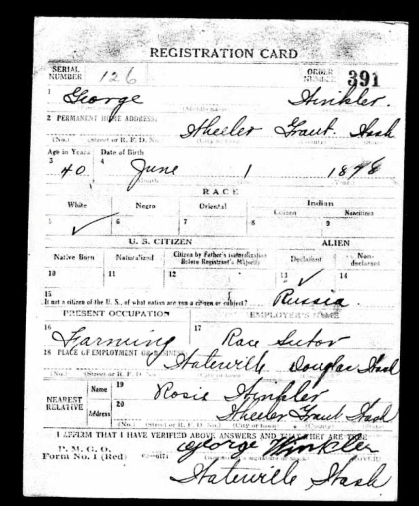 | Winkler, George | Head | 41 | 1900 | Papers | Yes | Yes | Russia | German | Russia | German | Russia | German | Yes | Farm Laborer | Farming | |