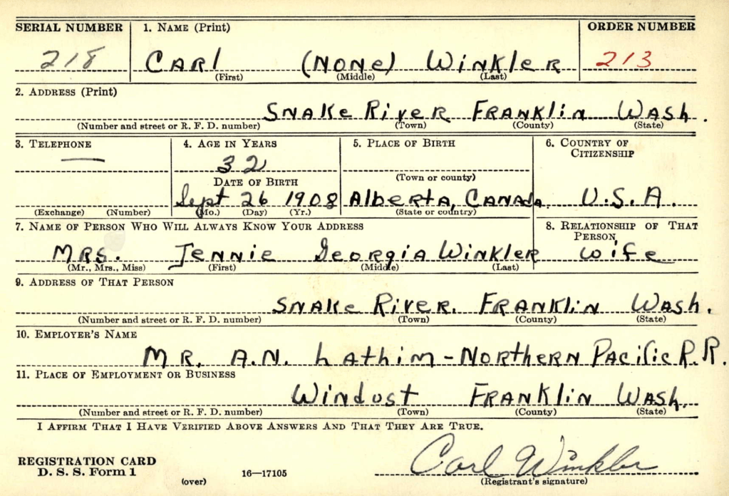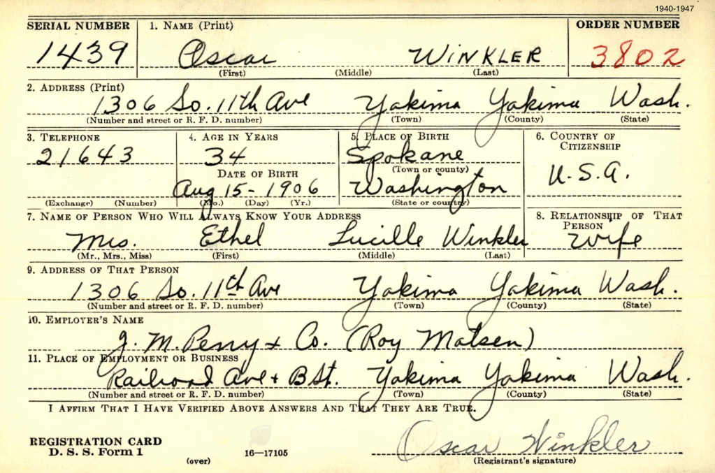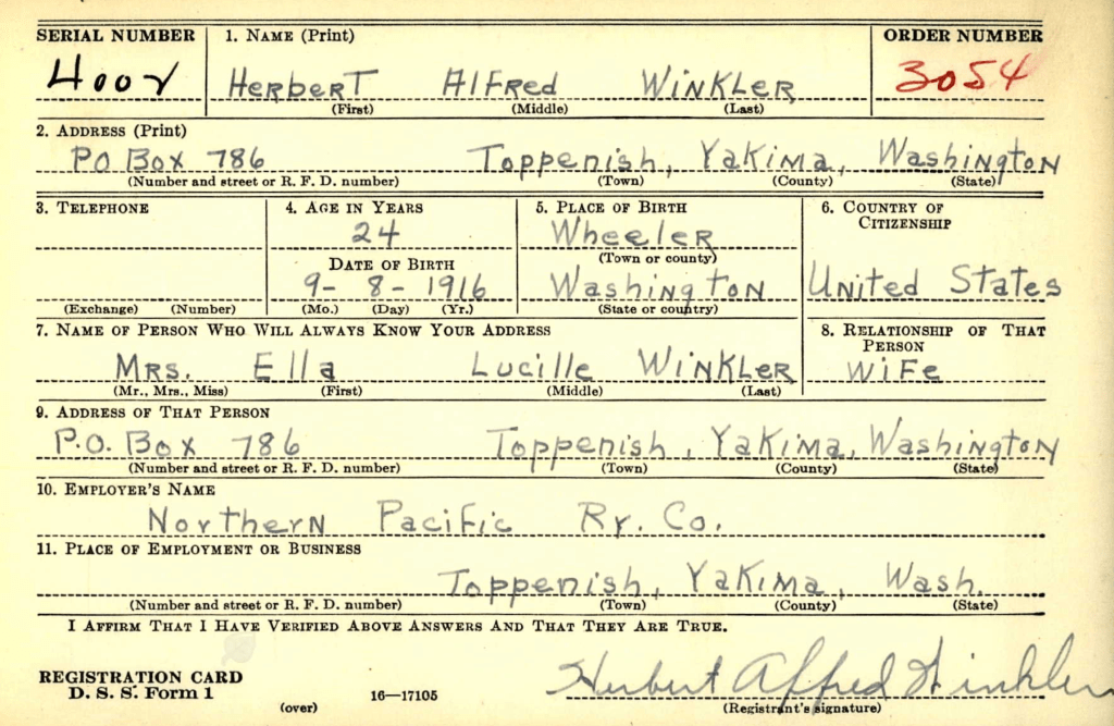 Herbert Alfred Winkler’s 1940 WWII Registration