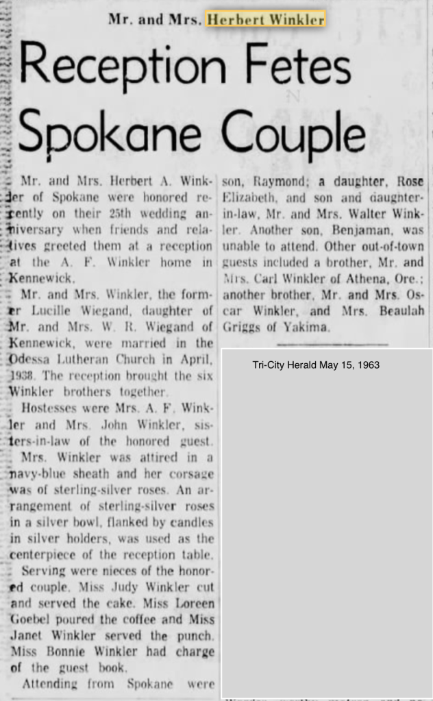 May 15, 1963. Herbert and Lucille celebrate their 25th Anniversary at Albert’s home in Kennewick Washington.
