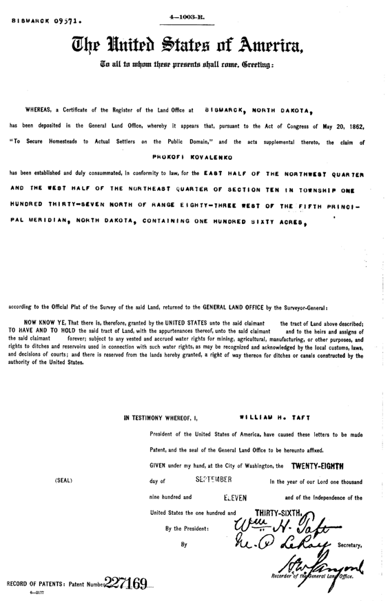 It wasn’t until Alexander ll came along and started taking away the Ukrainian/German way of life that they wanted a new start. That’s when the promise of cheap land and freedom in the United States came into play. Prokofi was able to purchase land in North Dakota. 160 acres of land in 1911 to homestead and farm.