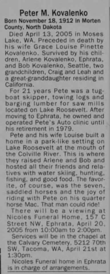 ~Peter Marcus Kovalenko passed away on April 13, 2005, in Moses Lake Washington