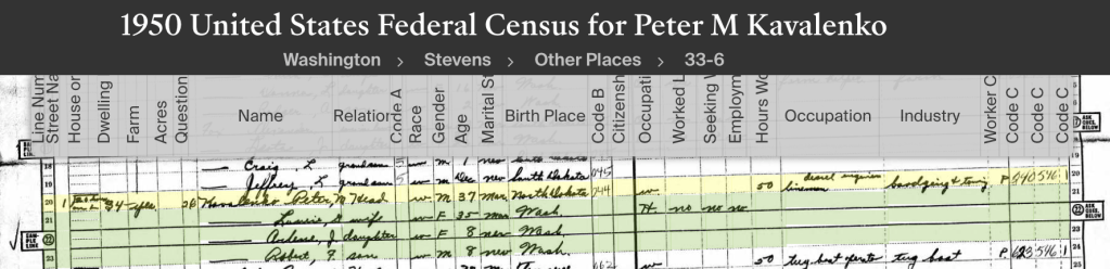 1930 to 1940 was a busy year for son George and his wife Katherine. They had 5 kids under the age of 9. It looks like they are living on the family land and George is farming alongside Prokofi. Prokofi is now 62 and Katie is 60 years old. All of the adults have 8th grade as the highest grade completed. They are working on their own account on the farm and are working about 65 hours a week.