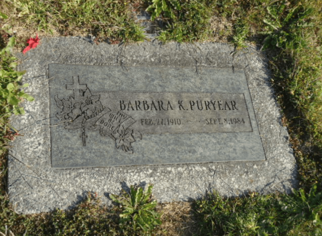 On September 8, 1984, Barbara passed away at the age of 74. Her final resting place is at Calvary Cemetery Tacoma, Pierce County, Washington. It is a beautiful cemetery that also has her parents, grandparents, aunts and uncles and other relatives