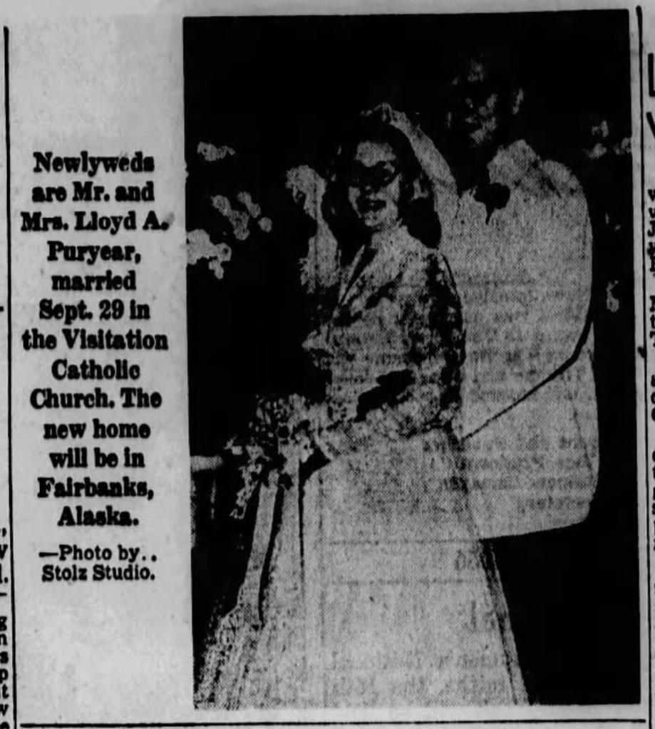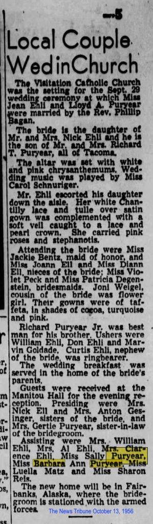 Lloyd Albert married Miss Jean Ehli on October 13, 1956, at Visitation Church in Tacoma, Washington.