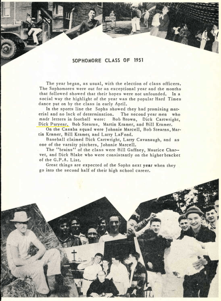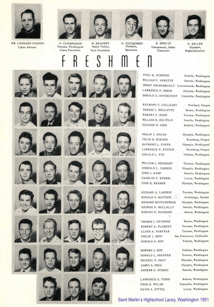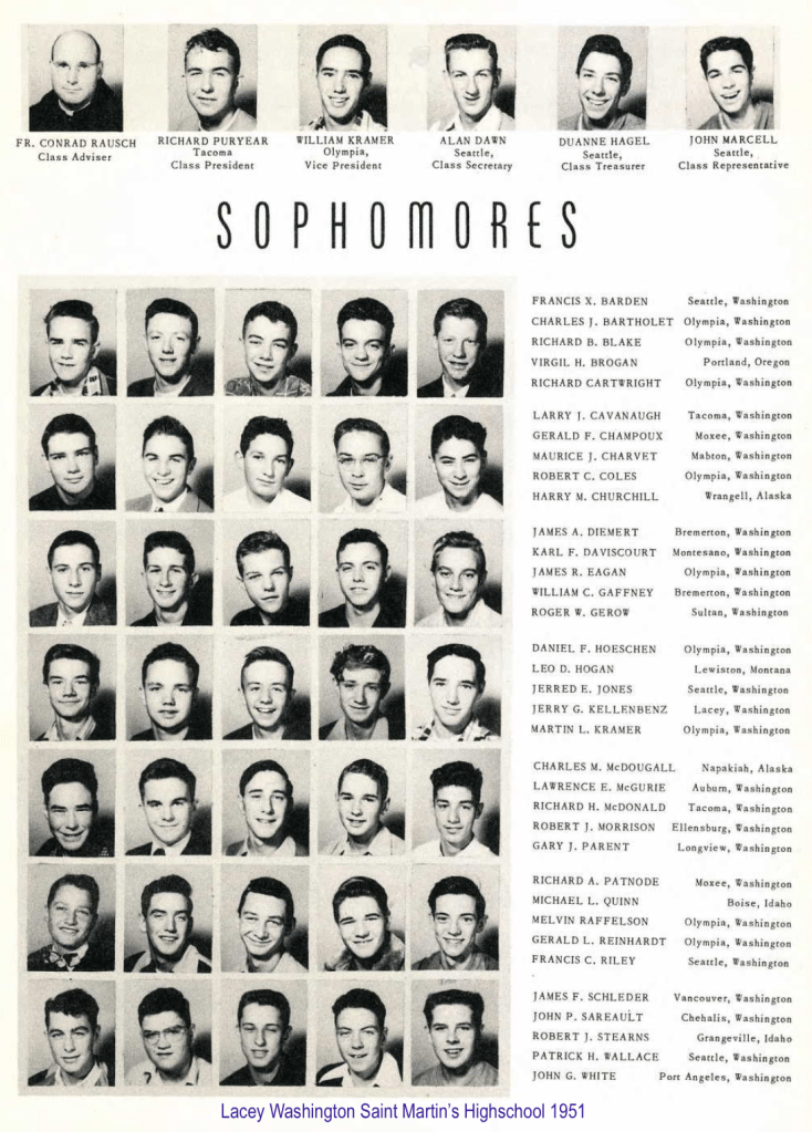 Richard and Lloyd attended Saint Martin’s Highschool in Lacey, Washington, in 1951. Richard was a Sophomore, and Lloyd was a Freshman.