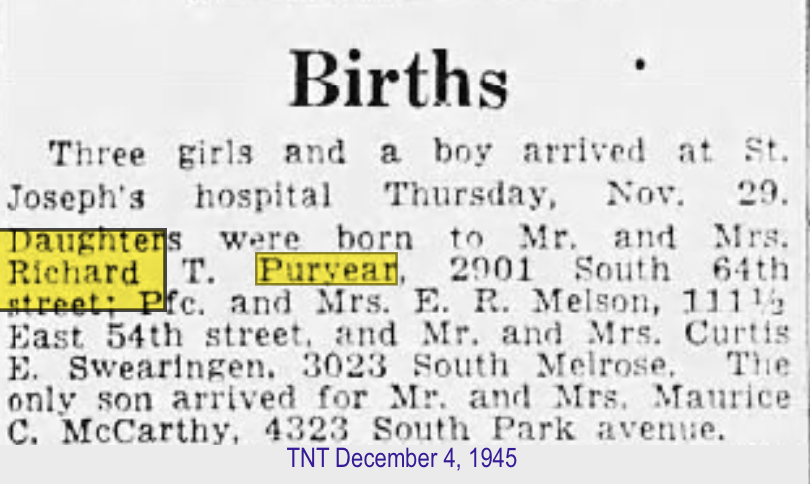 Sometime between 1920-1925, the family moved to Clarinda, Iowa, where other Puryear relatives lived.