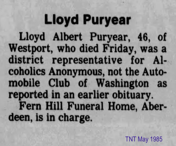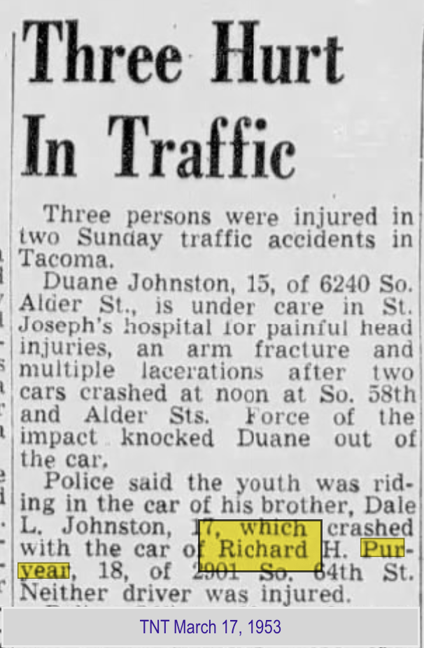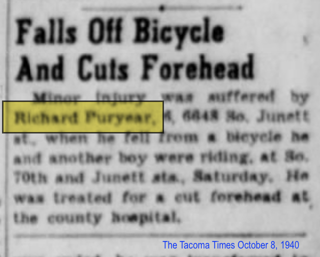 On November 20, 1935, Richard Herbert Puryear was born in the small town of Forks, Washington.