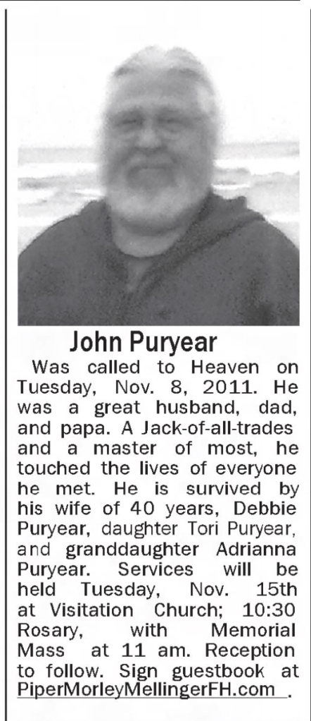 John Passed away November 8, 2011in Tacoma, Pierce County, Washington