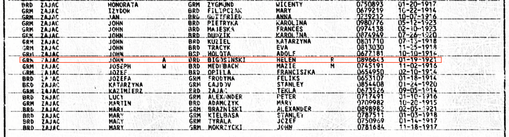 (Father: Stanislaw “Stanley” Bigosinski 1873–1925) (Mother:Michalina Pawlak )