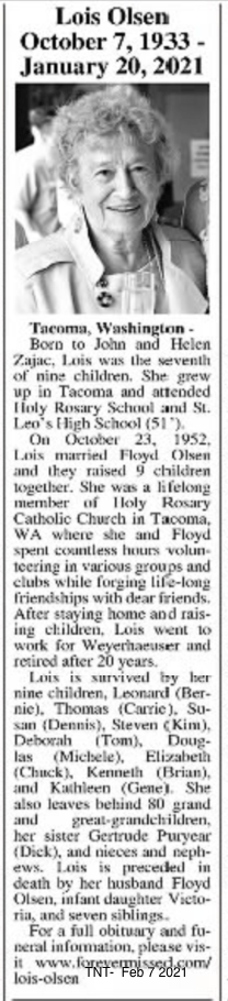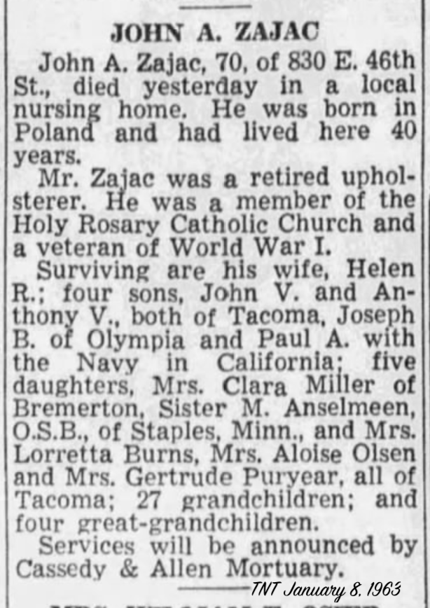 DEATH 7 JANUARY 1963 • Tacoma, Pierce, Washington, USA
