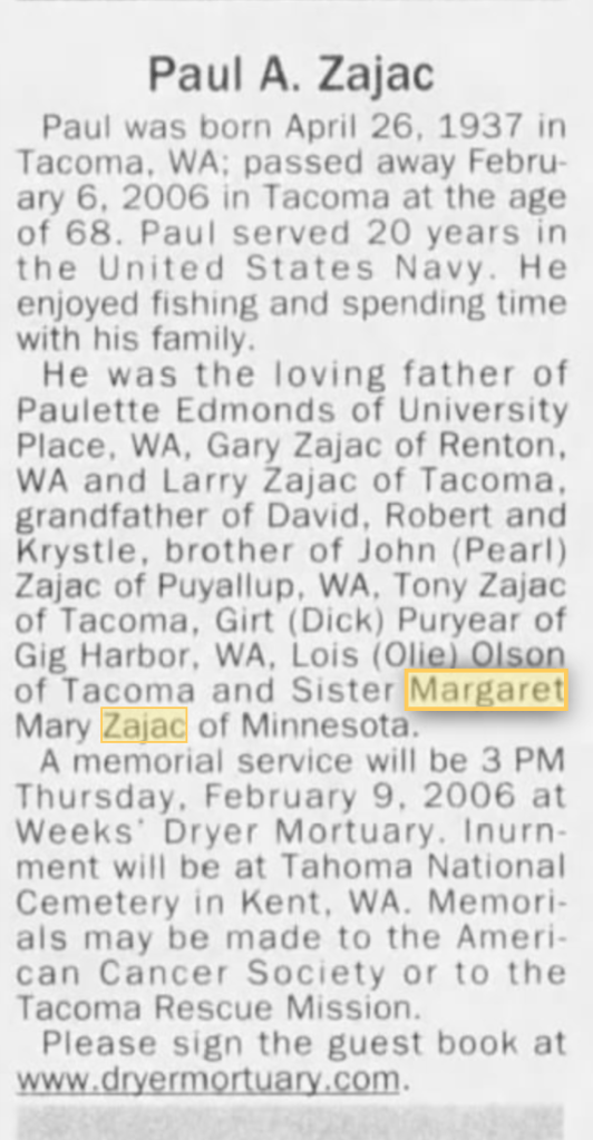 | Name: | Margaret Mary Zajac |