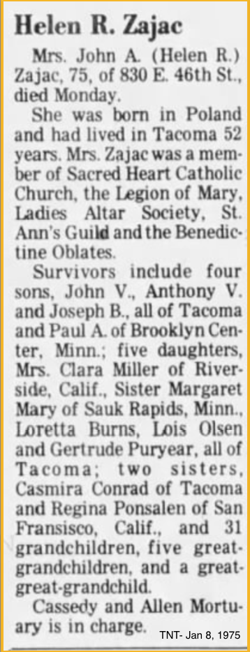 What is your favorite story or memory of any of the Zajac Family? Let me know. I have a lot of missing pieces in their story and would love to fill in the gaps and add more pictures. I would love this blog to continue to grow for future generations to discover their roots.