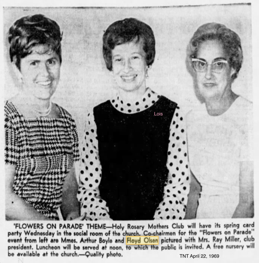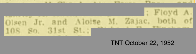 On October 23, 1952 Floyd married Alois Marie Zajac in Tacoma at Holy Rosary