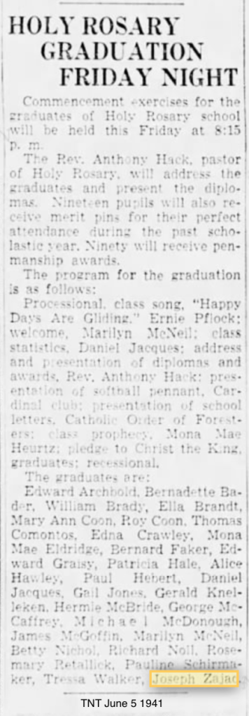 Joseph Benedict graduates from Holy Rosary Tacoma, Washington. June 5, 1941