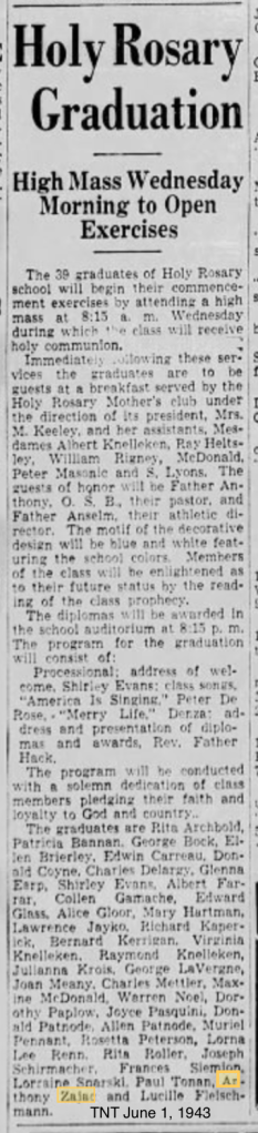 Anthony Victor graduates from Holy Rosary, June 1, 1943