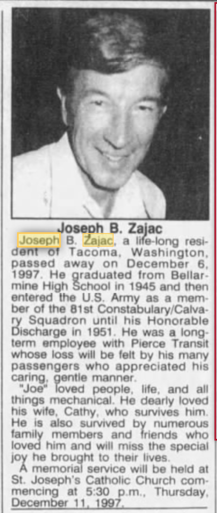 | Father: | John A Zajac |